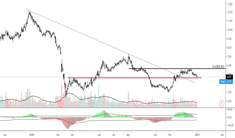 YPF no pudo con el 61.8 del retroceso de Fibonacci correspondiente al rebote de toda la caída desde los 7,30 hasta 2,98 dólares. En caso de perder el soporte actual de 4,70 dólares, tenemos como soportes a 4,20 y luego 3,90 dólares.
