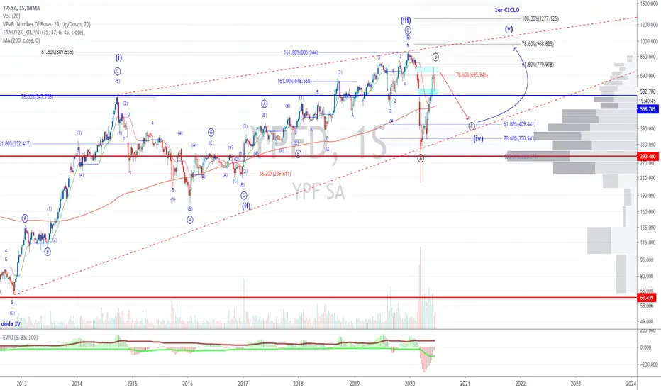 Finalizado este movimiento se espera una corrección de grado mayor, la cual va a permitir cerrar el primer ciclo de Elliott a YPF.