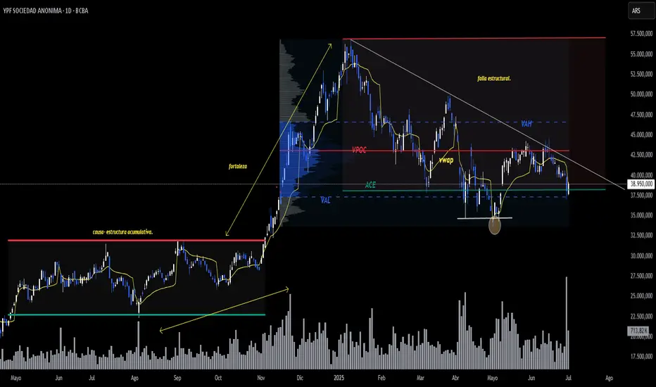 YPFD mantiene una estructura técnica con intenciones alcistas contenida dentro de un rango post-corrección. La reacción tras el evento noticioso mostró absorción de oferta y respeto por niveles clave. A nivel estructural, la demanda buscará superar la directriz bajista y el VPOC, que representan los dos próximos desafíos técnicos. Mientras tanto, el comportamiento del volumen y la aceptación de valor en niveles actuales serán claves para validar un nuevo intento de impulso.