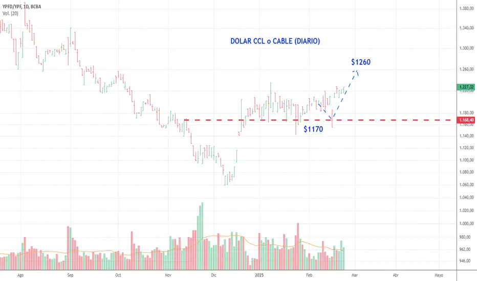 El dólar finalmente hizo el retroceso que esperabámos a los $1170 y desde allí empezó a subir. El próximo objetivo son los $1260.