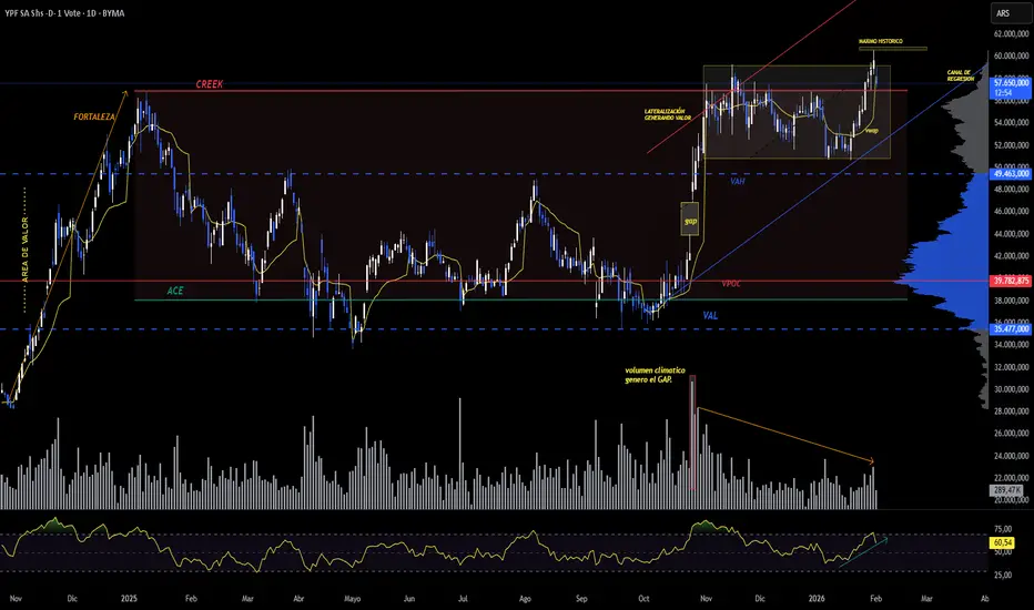 YPFD en reacumulación: tras el máximo histórico vuelve al Creek y lateraliza generando valor con el VWAP como eje.
