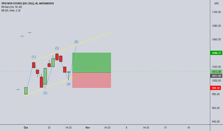Compra en el precio 1.011,50 Futuros ROFEX, con el broker Bull Market, se marca un canal de tendencia en tiempo de 4HR