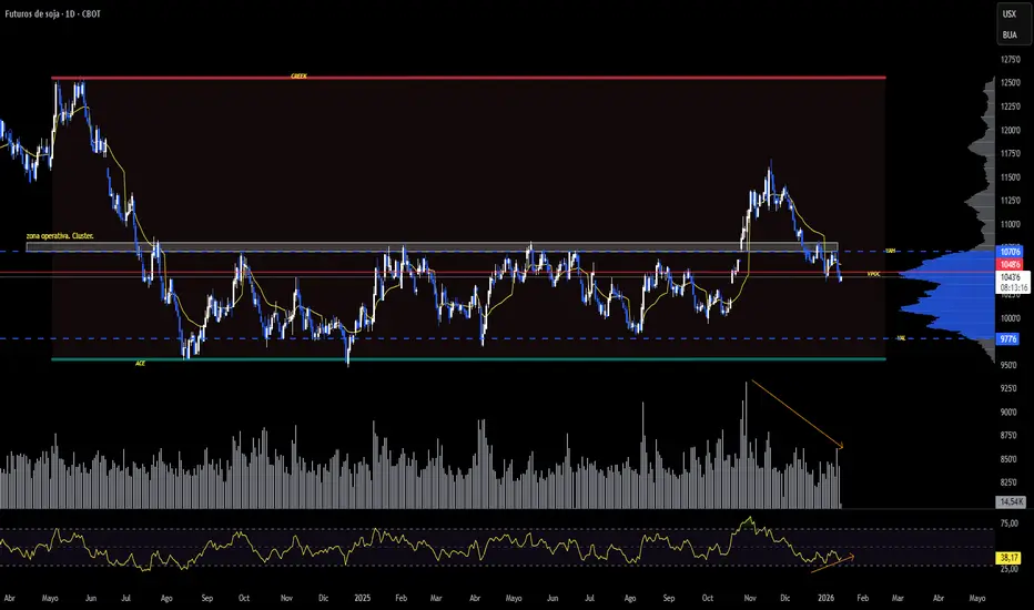 • El precio continúa lateralizando dentro del rango mayor, con techo bien definido en el creek (zona alta del rango) y base en ACE / VAL.