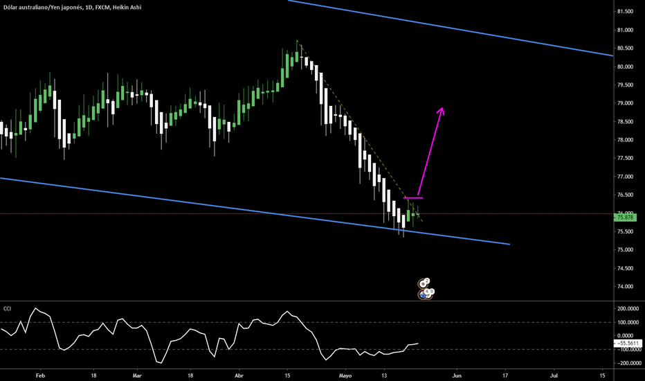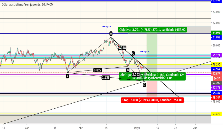 AUDJPY COMPRAObservamos un patrón de cambio de tendencia Hombro-Cabeza-Hombro, Buen nivel de fibonacci unido al retest de la tendencia bajista mayor rota. buscamos compra hasta las zonas señaladas por las flechas o swing trade hasta el rayo punteado. colocar SL un poco mas abajo del 100% de fibonacci o esperar rupturas de tendencias bajista menores.
