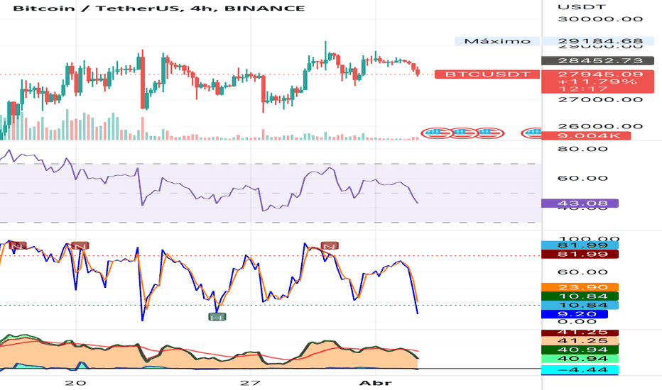 BTCUSDT 4HHola el precio del btcusdt en grafico de 4 horas muestra un rango de precio entre 28700 al 26500.