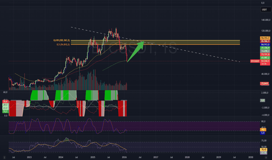 El BTC llegando al obtejivo de retroceso de fibnacci en el nivel 0,5 que son aproximadamente 70.000 usd. Buen nivel para empezar a llevar BTC haciendo DCA, peeeeeeeero, hemos de saber que si perfora el nivel 0,5 de fibo podemos ir a buscar soportes mas abajo aun, por ejemplo, otro nivel de soporte interesante son los 50.000 usd, y ya que estamos analizando, los 38.000 tampoco parecen muy lejanos.