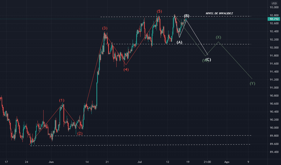 DXY - COMPRESION SEMANAL 16/7/2021Podemos notar que nuevamente esta en zona de resistencia, esta vez con un MACD dando clara compra, un RSI por sobre los 50pts, y dejando una vela por sobre la MM de 60 periodos. Todo esto nos daría a entender que esta próximo a volar hablando burdamente. En caso de así creemos que se necesitara una vela con buen volumen, y un pullback por sobre los valores en que estamos hoy en día.