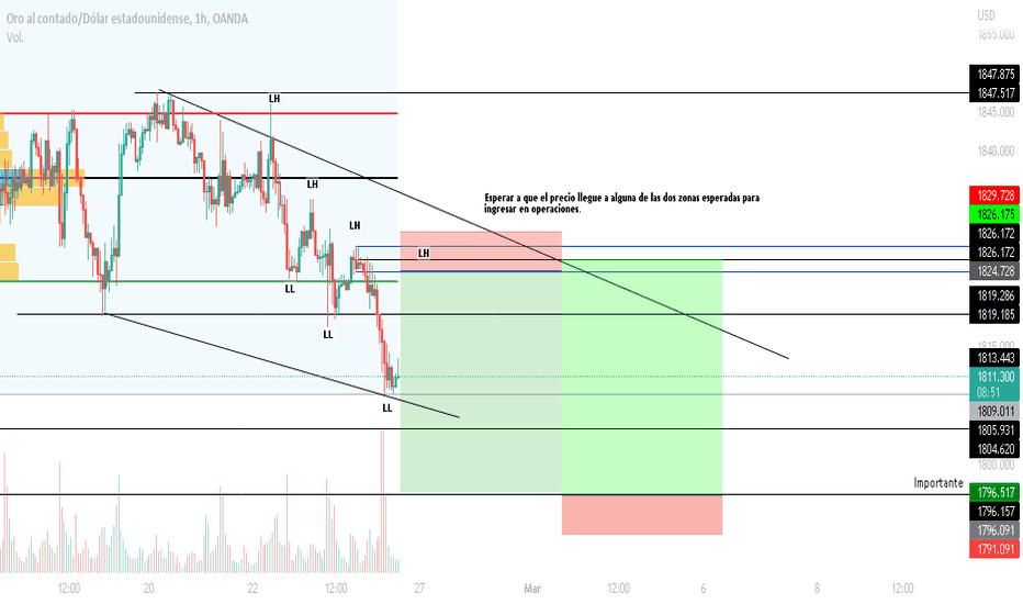 Panorama XAUUSDAnálisis Técnico: El activo se encuentra inflexión bajista fuerte, e igualmente tiene un order block por la parte alta con vacio de liquidez bastante notorio podríamos evidenciar la llegada del activo a la zona de 1824.72 y luego caer hasta la zona de 1796.51.