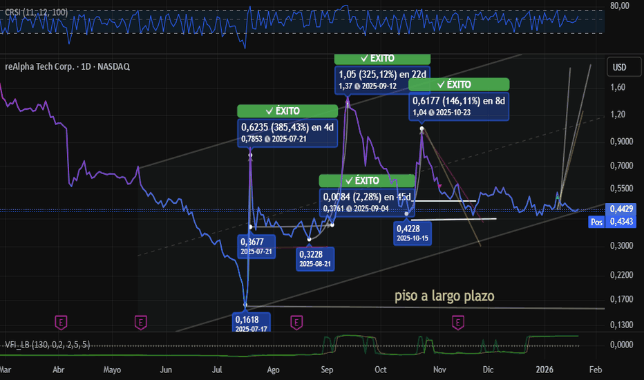22/1/2026con objetivo a largo plazo ,esta acción nació en 400 dólares, toco lo 0,15 centavos y hoy esta 0,43 , mañana llevaré todas las que pueda para largo plazo,esta acción repite patrones como qubt ,que en estos mínimos salió a flote dejando entre 20.000% y 2.000% en un par de años ,chequen la info