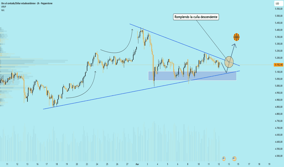 Si el precio se mantiene en la zona de soporte actual y rompe por encima del borde superior del patrón de cuña, la estructura técnica sugiere la posibilidad de extender el impulso alcista hacia la región de 5300+ para encontrar liquidez por encima.