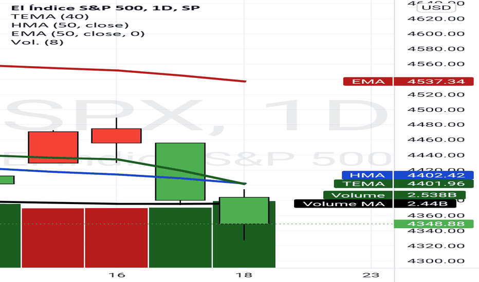 El escenario más probable para esta semana, es ver la cotización del SP500 de nuevo a la zona de mínimos. Compuestas entre los 4.250-4.300.📝