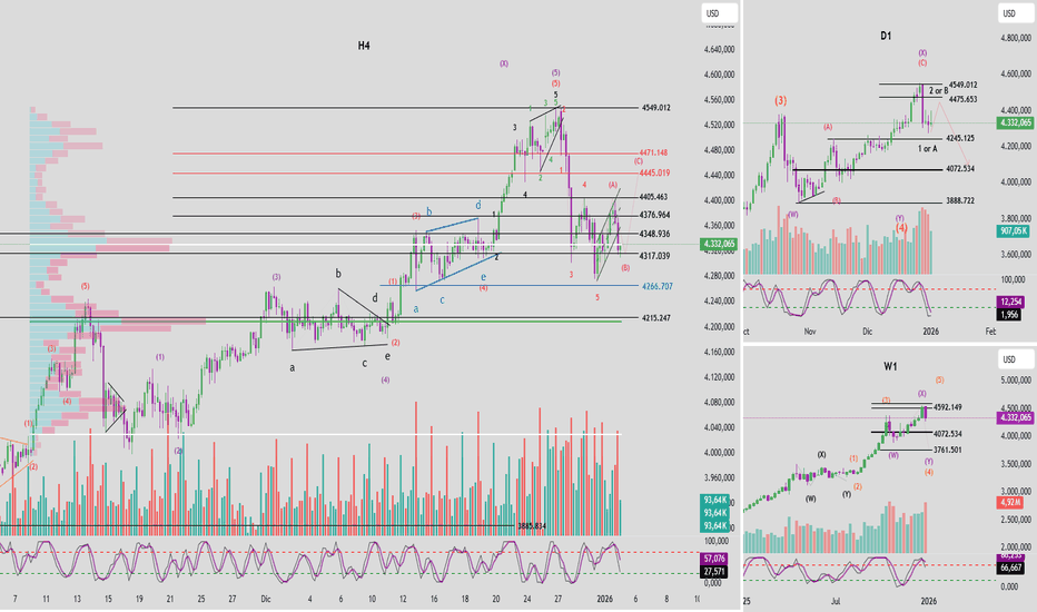 ⚠️ Si el precio rompe con claridad por encima del nivel 4549 mientras el momentum D1 ya se encuentra en sobrecompra, el escenario actual de conteo de ondas quedará invalidado y deberá ser reevaluado.