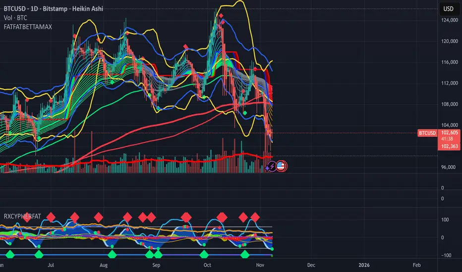 Custom All-In-One indicator with Super Guppy, BB, KC, AlphaTrend