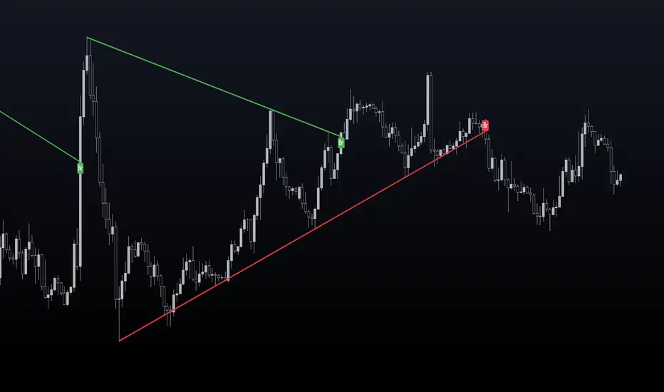 Calculating pivot points helps traders identify moments at which the market's attitude can shift from bullish to bearish. In the background, the script tracks pivot events for trendlines and uses a system that prevents any leakage between the trendlines before they are drawn.