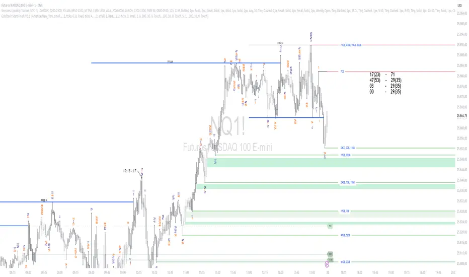 By mapping these numerical relationships into time and price structures, this tool detects potential zones of confluence and algorithmic reaction points often hidden to traditional technical indicators.