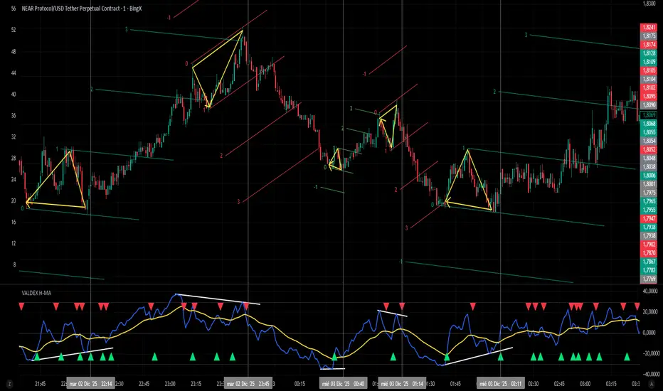 This script, VALDEX H-MA, offers a highly streamlined, zero-centered Relative Strength Index (RSI) for impulse and cycle analysis, complemented by a fast Exponential Moving Average (EMA) filter.