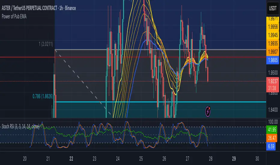 A comprehensive trend analysis tool that displays seven exponential moving averages (20, 25, 30, 35, 40, 50, and 55 periods) with a color-coded gradient system. The indicator creates an "EMA cloud" effect that helps traders quickly identify trend direction, momentum strength, and key support/resistance levels.