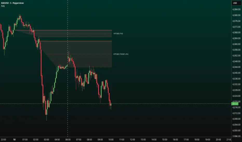 - Plots higher‑timeframe Fair Value Gap (FVG) zones directly on your current chart.