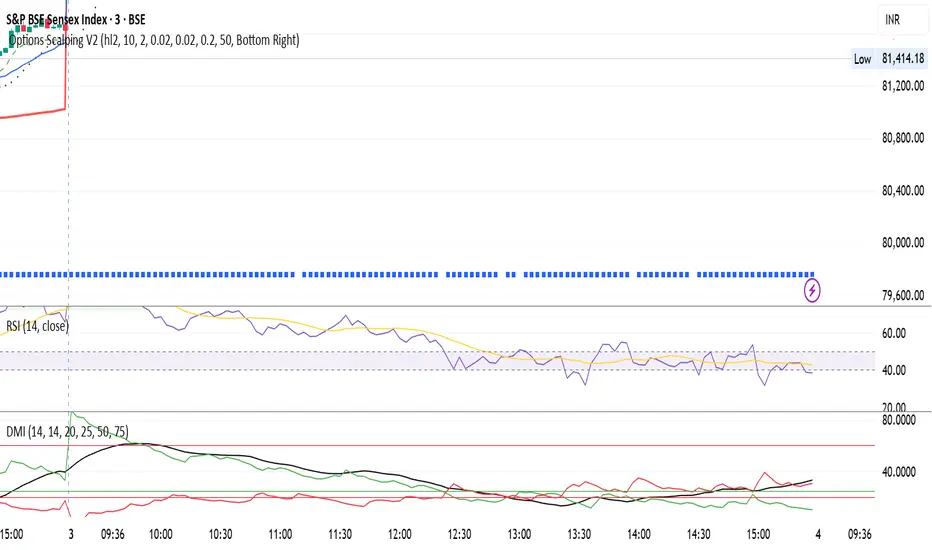 Sai & Deb DMI with horizontal lines. Existing DMI lines are used and various levels can be drawn between 0 and 100 to see the trend reversals.