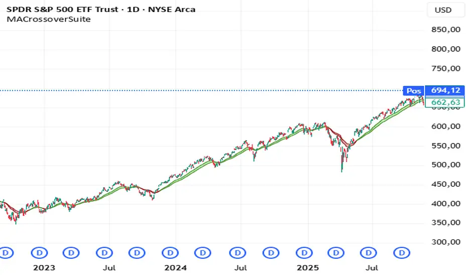 The Moving Average Crossover Suite indicator is part of the collection of standard indicators used in classic trading. It is a simple crossover of moving averages, in this case, of all the averages available for TradingView: SMA, EMA, WMA, HMA, RMA, etc.