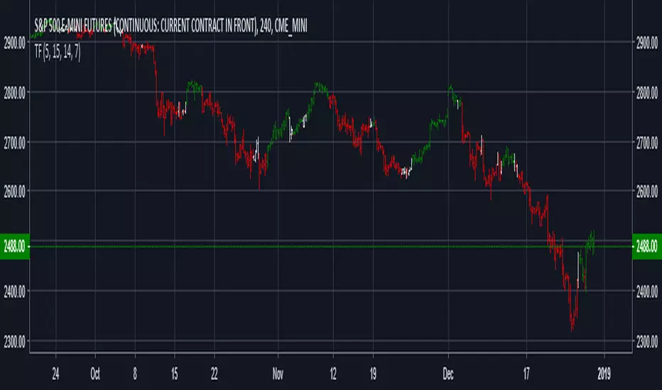 TF must be used in conjunction with other indicators of your preference to find the right time to go long or short, or to find levels of overbought or oversold, support or resistance levels, Fibonacci or those of your preference to find the best points of entry or exit. In short TF allows to resolve the doubt in which side of the trade I must place, whether to go long or short.