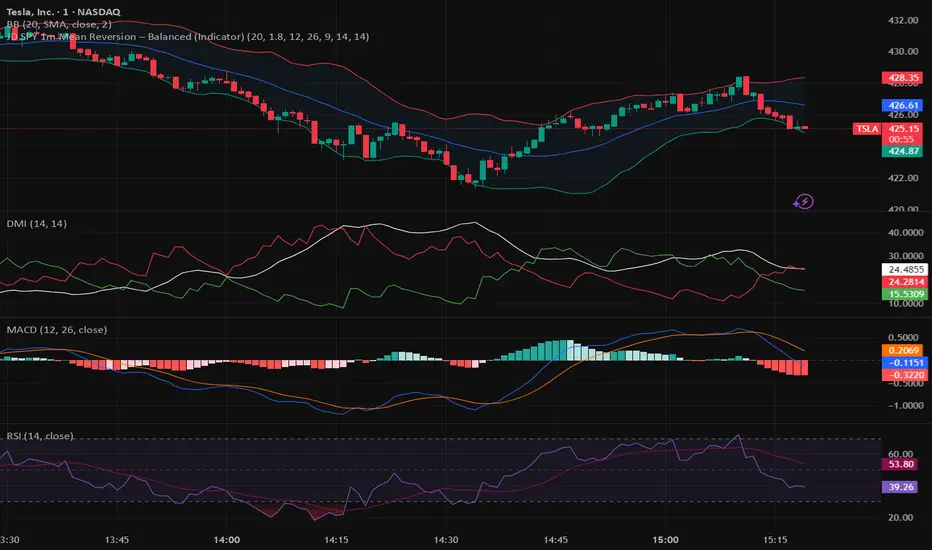 This approach is particularly effective on **short intraday timeframes (e.g., 1-minute or 5-minute SPY charts)**, where frequent oscillations occur within tight volatility bands. The goal is to capture small, repeatable edges from market overreactions while maintaining a strict discipline in trade execution and risk management.
