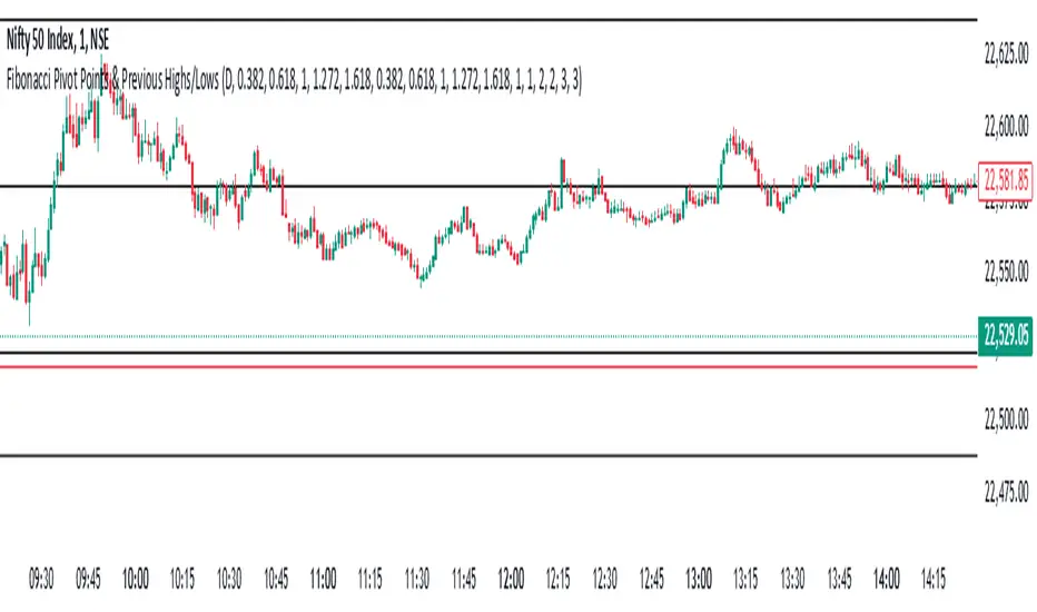 This indicator combines Fibonacci Pivot Points with previous high and low levels for different timeframes (day, week, month). It plots these levels on the chart to provide traders with key support and resistance areas, making it easier to identify potential trading opportunities.