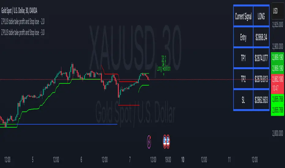 The **Z PLUS Take Profit & Stop Loss** indicator is designed to provide traders with a structured approach to setting take profit (TP) and stop loss (SL) levels. It integrates multiple technical analysis techniques, including moving averages, the Relative Strength Index (RSI), and the Average True Range (ATR), to generate signals for potential trade entries and exits.