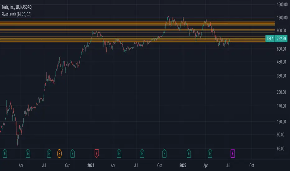 An experiment with pinescript's line.new() function. The Autodrawn Pivot Levels indicator draws horizontal lines in areas where prices have been flat, which serve as pivot points. This can be useful for pivot trading as it visually shows several critical levels