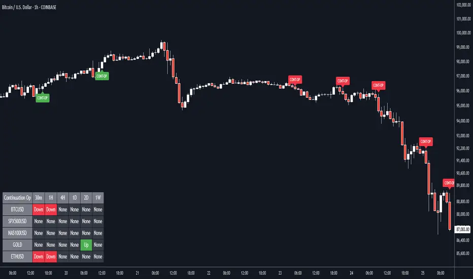 Validate Across Timeframes: Use the MTF Screener’s output to confirm that the continuation signal is consistent across various timeframes.