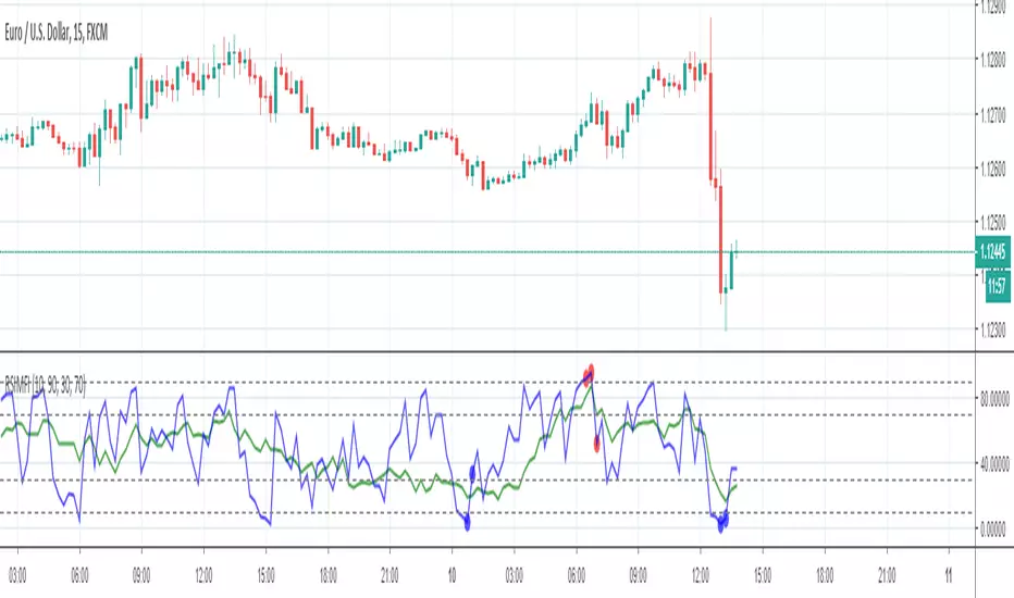 Script provides signal if MFI and RSI reachs to oversold or overbought condition.