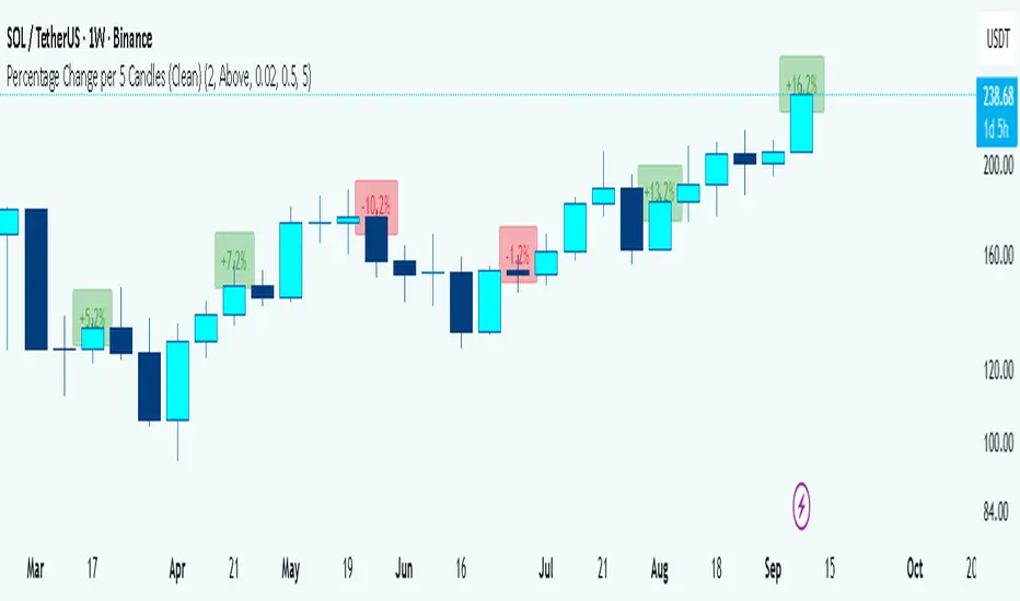 This indicator quantifies price action. Instead of just seeing “green” or “red” candles, you now know exactly how much the price changed in percentage terms, directly on the chart, in real time. It helps you distinguish between strong and weak moves and makes your analysis more precise.