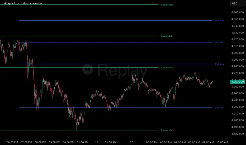 🔹 All session ranges, midlines, and deviation levels now extend into the next trading session, giving seamless multi-session context.