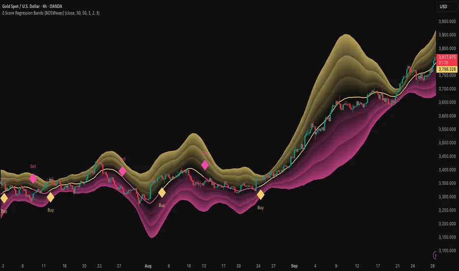 Z-Score Regression Bands [BOSWaves] – Adaptive Trend and Volatility Insight