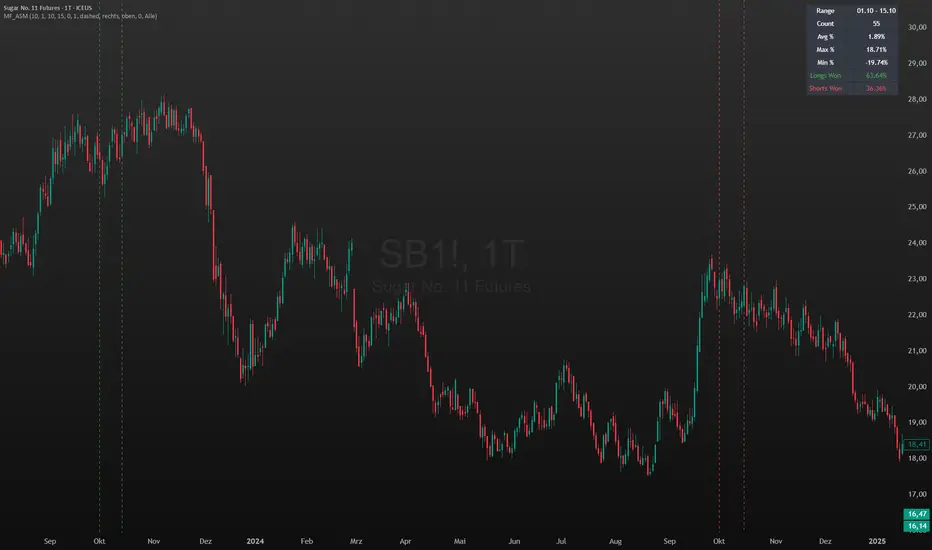 To quikly look at the time periods in the past it markes the chosen dates each year with two horizontal lines.