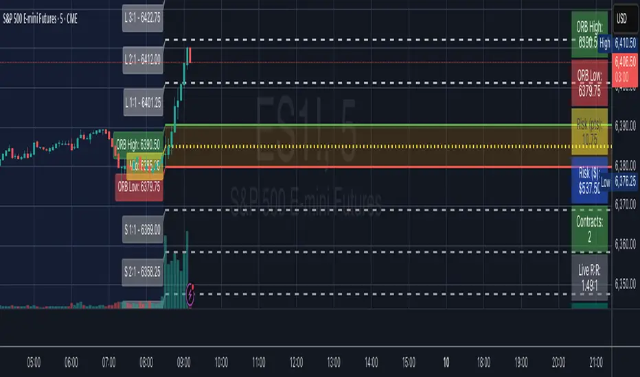 - The current LIVE R:R based on the entry, if price is abobe ORB High it will simulate a LONG position is price is below the ORB Low it will simulate a SHORT position,