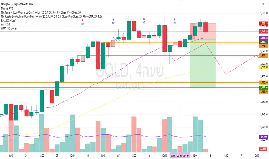 This indicator flags classic Wyckoff/VSA “No Supply (NS)” events—down bars that print on unusually low volume, suggesting a lack of sellers rather than strong selling pressure. NS often appears near support, LPS, or within re-accumulation ranges as a test before continuation higher.