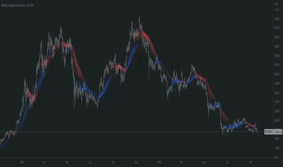 A very simple moving average cloud to assess momentum. This indicator is not meant to be used for entry triggers, but rather to see when momentum may be shifting