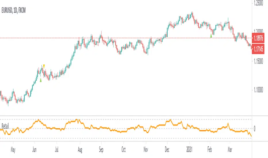 This script tries to estimate how inclined may retail traders be to open a position based on popular indicators RSI, Stochastic, Ichimoku, Bollinger Bands, MACD, and 200 EMA. Conditions are: