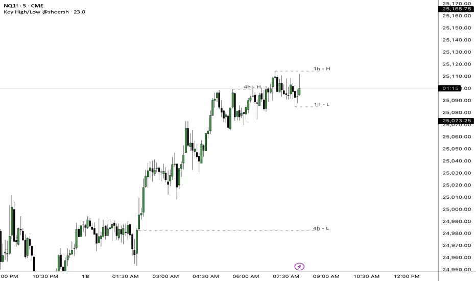The Key High/Low ICT by sheersh169sharma indicator is designed to identify key liquidity levels across multiple timeframes and custom trading sessions. It provides precise visualization of historical highs and lows to assist in technical analysis.