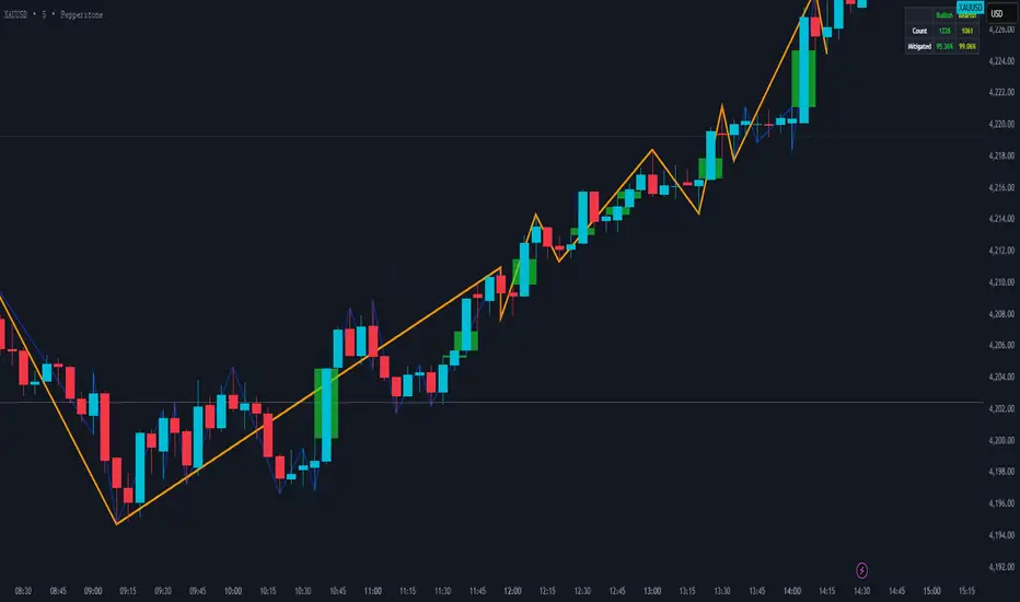 透過上述步驟,可以識別出主要的更高高點、更高低點、更低高點和更低低點,以及主要趨勢。主要趨勢線的峰值和低點可以用鋸齒形或具有相應上升/下降顏色的圓點符號來顯示。