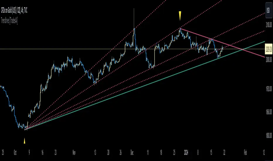 This indicator allows the user to pick any Candle (preferably a Pivot, for better results) to draw the most relevant Trendlines from it as Origin, while keeping track of candle closes across these Trendlines to adjust or invalidate accordingly.