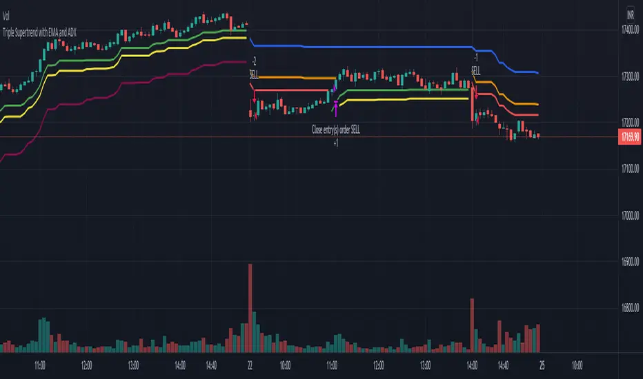 Triple Supertrend with EMA and ADX strategy