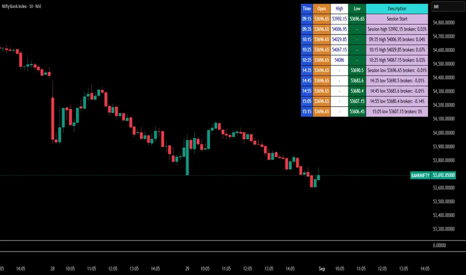 This indicator is ideal for intraday traders who want reliable visual cues to monitor momentum shifts and breakout/breakdown points during the trading day. By capturing these break points as discrete events and organizing the data into an easily accessible, visually intuitive table, it improves situational awareness and supports timely trading decisions.