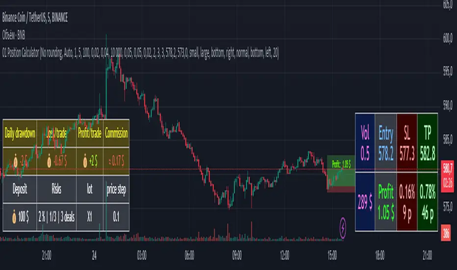 This calculator is suitable for beginners to make it easier to study trading and not get confused at the very beginning with volume calculations, I also use it for virtual trading, a position is drawn on the chart in real time, which shows the amount of loss or profit, that is, with the help of it I I practice different strategies without losing real money on experiments.