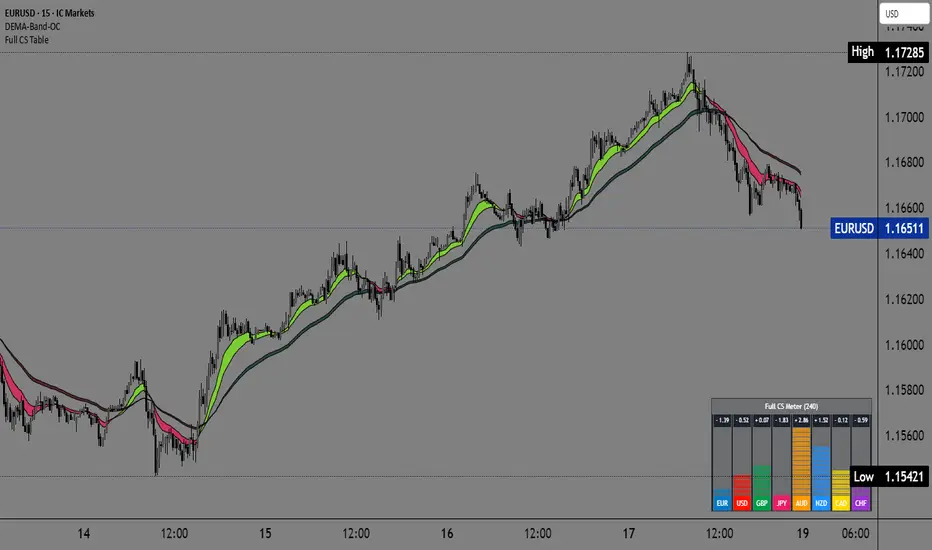 * **Strength Calculation:** Strength is calculated based on the average percentage change $\left(\frac{\text{Close} - \text{Open}}{\text{Open}} \times 100\right)$ of the currency relative to all 7 other currencies.