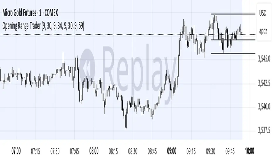 This indicator, "Opening Range Trader," provides visual tools for defining and tracking two customizable intraday ranges plus today’s open, high, and low. It is designed for day traders to identify support, resistance, and breakout opportunities by automatically marking key price levels that often shape the day's momentum.