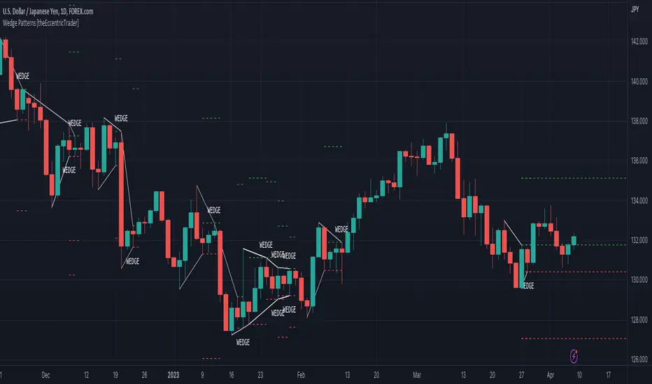 This indicator automatically draws wedge patterns and price projections derived from the ranges that constitute the patterns.