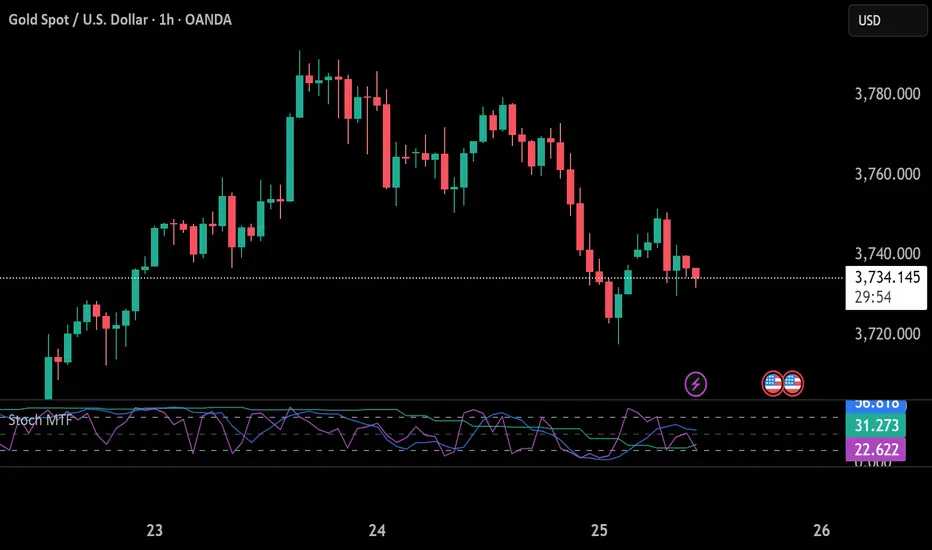 Stochastic 6TF by J is a Multi-Timeframe (MTF) Stochastic indicator