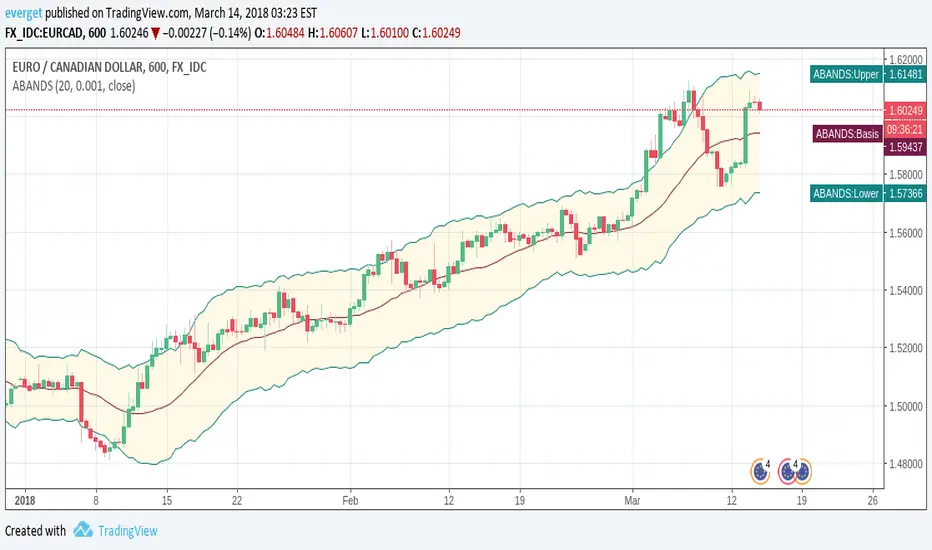 Acceleration Bands indicator script. This indicator was originally developed by Price Headley.